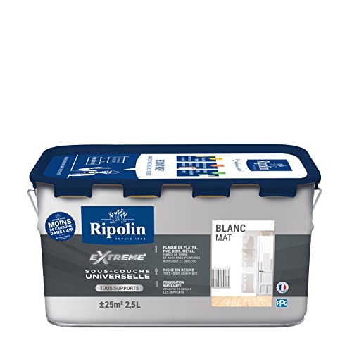 RIPOLIN - Sous-Couche Universelle Extrême Intérieur - Tous Supports - Anti Goutte - Très Forte Adhérence sur le Support - Enduit Avant Peinture - Mat - 2,5L - Blanc