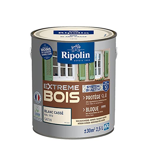 RIPOLIN - Peinture pour Bois Intérieur/Extérieur - Sans Sous-couche Ultra-couvrant - Résiste aux Intempéries, UV et Chocs - Protège et Magnifie - Lessivable - Satin - 2,5L - Blanc Casse