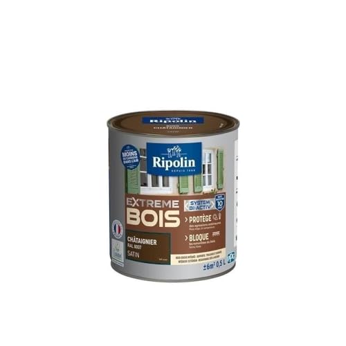 RIPOLIN - Peinture pour Bois Intérieur/Extérieur - Sans Sous-couche Ultra-couvrant - Résiste aux Intempéries, UV et Chocs - Protège et Magnifie - Lessivable - Satin - 0,5L - Chataignier