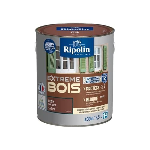 RIPOLIN - Peinture pour Bois Intérieur/Extérieur - Sans Sous-couche Ultra-couvrant - Résiste aux Intempéries, UV et Chocs - Protège et Magnifie - Lessivable - Satin - 2,5L - Teck
