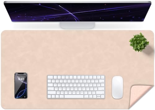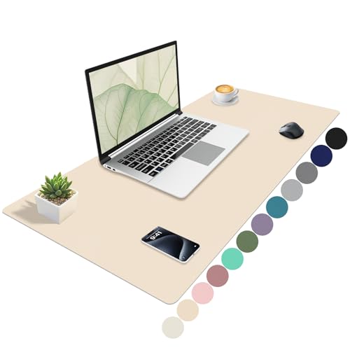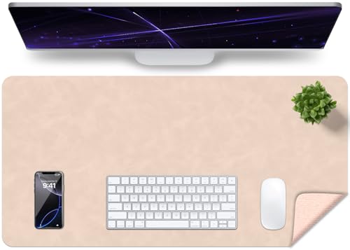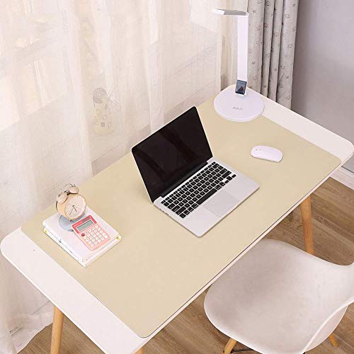 CENNBIE Tapis de bureau en cuir,100x50cm Sous main antidérapant étendu, tapis de souris en cuir PU imperméable, Sous main bureau pour le bureau et la maison (Crème)