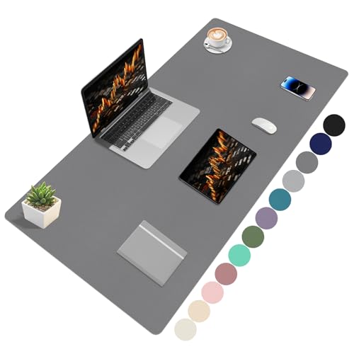 Niviy Sous Main Bureau Tapis de Bureau Cuir PU Tapis de Souris Protection Bureaus Antidérapant et Imperméable Desk Mat pour Bureaus et Maison Gris Foncé 80x40cm