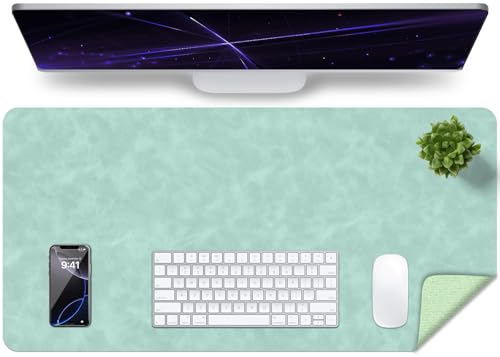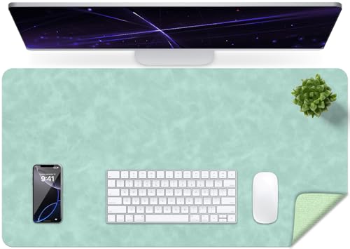 Tapis de Bureau Vieilli en Cuir, Tapis D'ordinateur Imperméable, Tapis de Bureau Facile à Nettoyer, Sous-Main et de Clavier pour le Bureau, Tapis de Bureau Grand Tapis D'écriture (Vert Menthe 90x43cm)