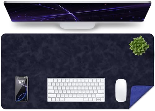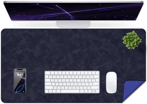 Tapis de Bureau Vieilli en Suède et Cuir, Tapis de Bureau D'ordinateur Antidérapant, Tapis de Souris et de Clavier Etanche, Sous-Main pour le Bureau et la Décoration Intérieure (Bleu Foncé, 60x34cm)