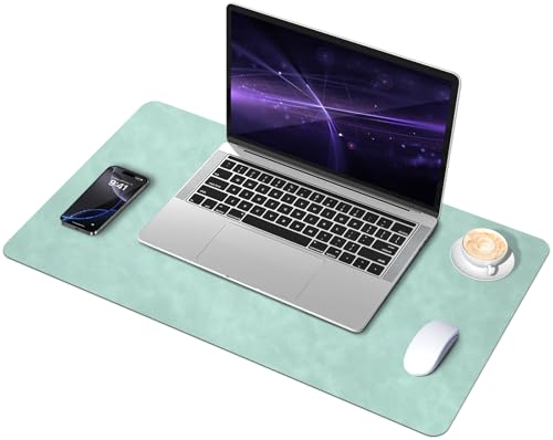 Tapis de Bureau Vieilli en Suède et Cuir, Tapis de Bureau D'ordinateur Antidérapant, Tapis de Souris et de Clavier Etanche, Sous-Main pour le Bureau et la Décoration Intérieure (Vert Menthe, 60x34cm)