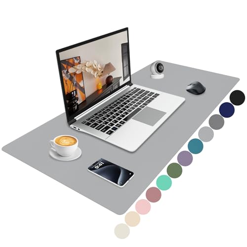 Vicloon Tapis de Bureau en Cuir PU, 60×30cm Sous-main Bureau, Tapis de Souris, Protection de Bureaus Antidérapant en Daim Avec Bords Cousus Multifonction Étanche pour Bureaus ou Maison(Gris)