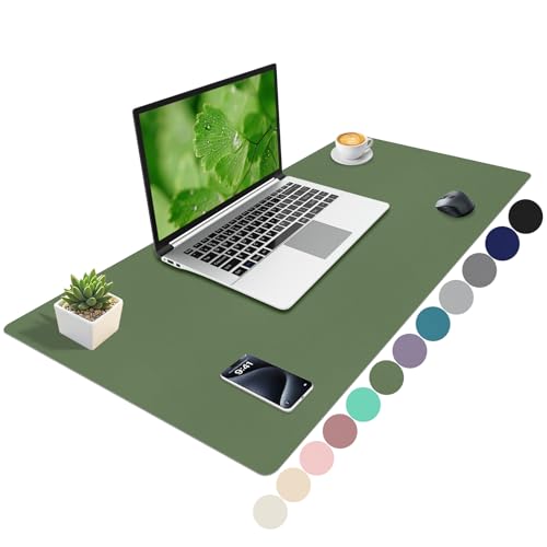 BLESWIN Sous-main de bureau en cuir vieilli, imperméable, facile à nettoyer, tapis de souris et de clavier, tapis de bureau pour bureau (vert foncé, 90 x 43 cm)