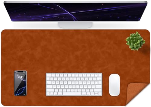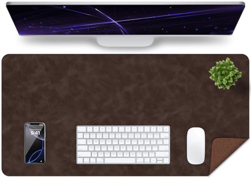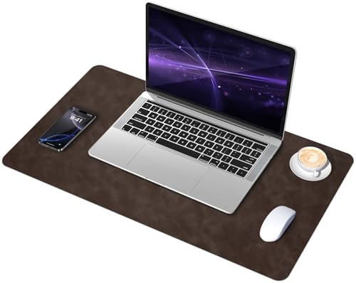 Tapis de Bureau Vieilli en Suède et Cuir, Tapis de Bureau D'ordinateur Antidérapant, Tapis de Souris et de Clavier Etanche, Sous Main Bureau pour le Bureau et la Décoration Intérieure (Café, 60x34cm)