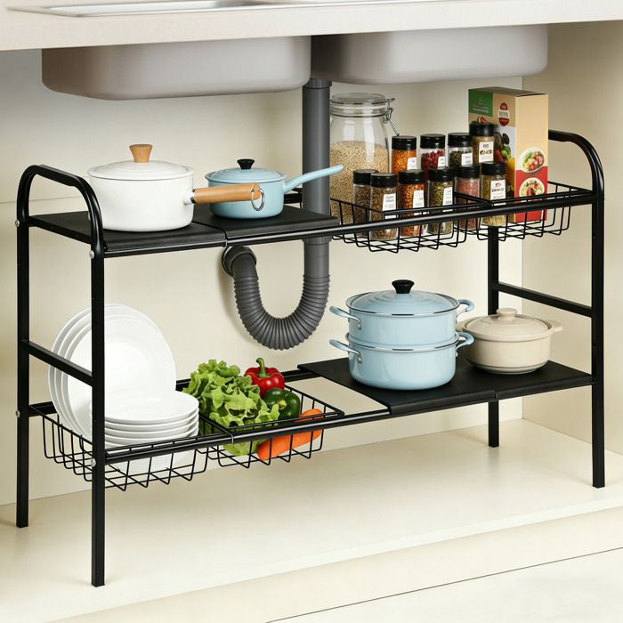 KROMS Etagere rangement sous evier cuisine noir taille M - Organisateur sous évier - Meuble sous evier cuisine