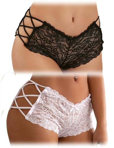 ohyeahlady Culotte Ouverte Entrejambe Strings et Tangas Femmes Sexy Chic Lingerie Femme Dentelle Culotte Dentelle Grande Taille String Coquine Hot Slip Brésilien sous-Vêtement Féminins(Noir,XS-S)