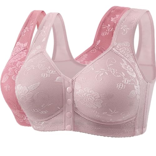 YGSIKY Soutien-Gorge Daisy pour Femmes âgées,sans Armatures, Couverture complète, Confortable, Fermeture Devant, Bouton,Soutien-Gorge Push-up sans Armatures pour Personnes âgées (C,48/110)