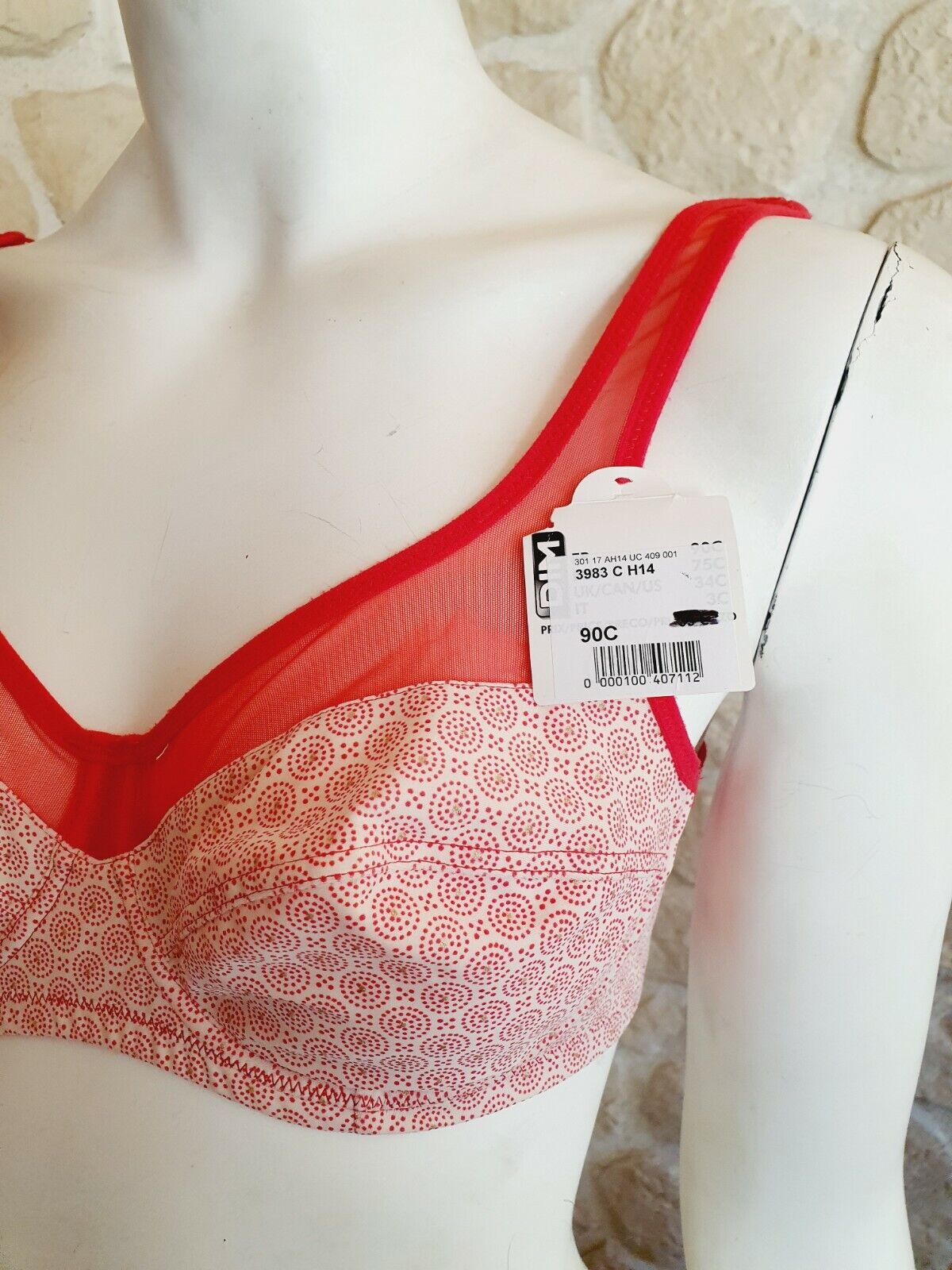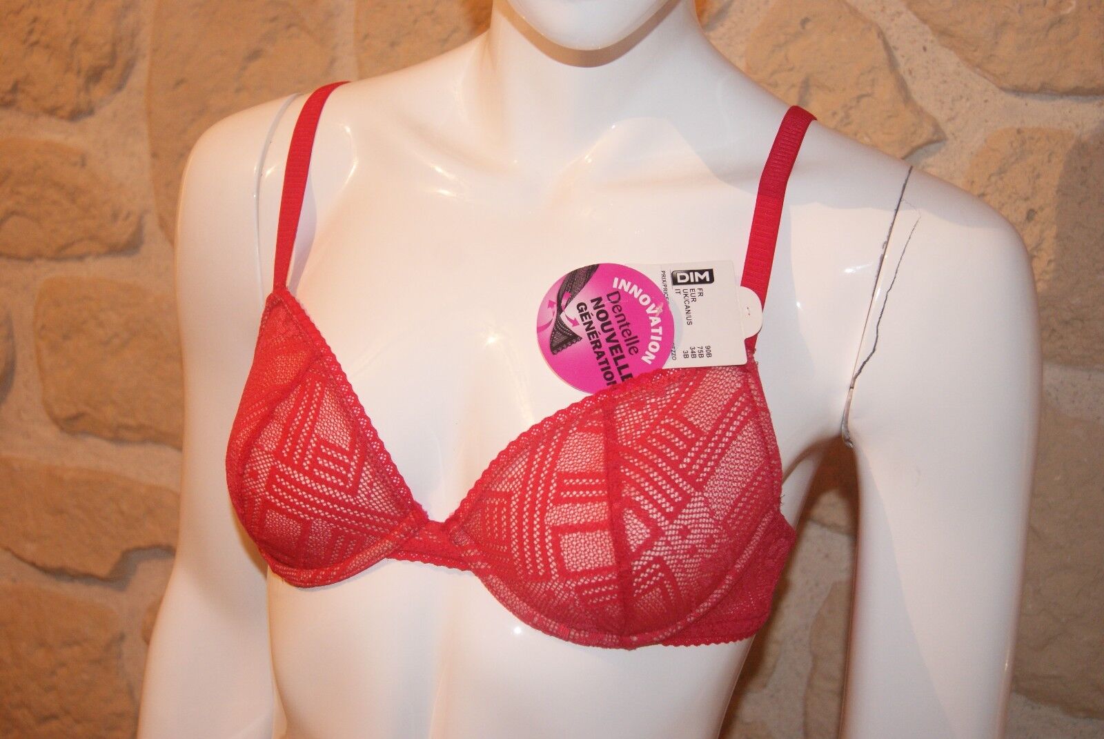 soutien-gorge rouge neuf taille 90C marque Dim Generous étiqueté à 39€ (mer)