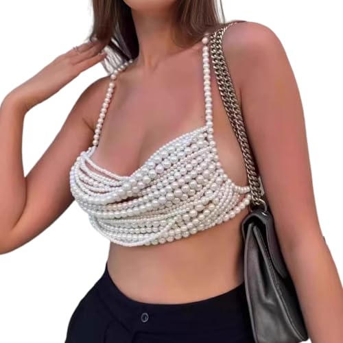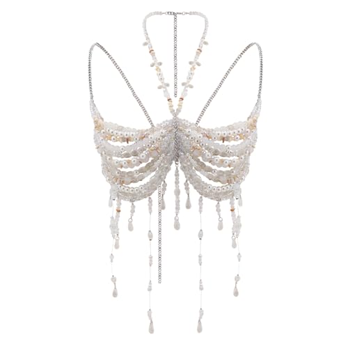 Gissroys Collier de perles pour femme - Soutien-gorge de plage - Bijou fantaisie - Dos nu - Soutien-gorge - Streetwear - Pour décoration de perles, taille unique, comme décrit, Comme décrit