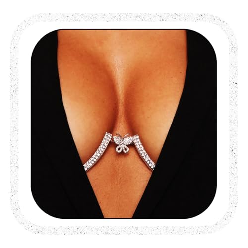 IYOU Support Poitrine Chaîne Soutien-gorge Papillon Strass Argent Chaîne Corps Brillant Cristal Tour Sein Corps Bijoux pour Femmes Boîte Nuit Bikini Fête