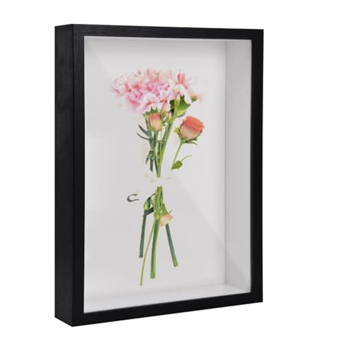 Xiciki Cadre Profond-Cadre 3D Profond A4, 22.7cm x 31.4cm Cadre Photo 3D à Remplir, Cadre de Boîte D'ombre, Cadre Photo en Bois pour Souvenirs, Fleurs, Souvenirs, Médailles - Noir