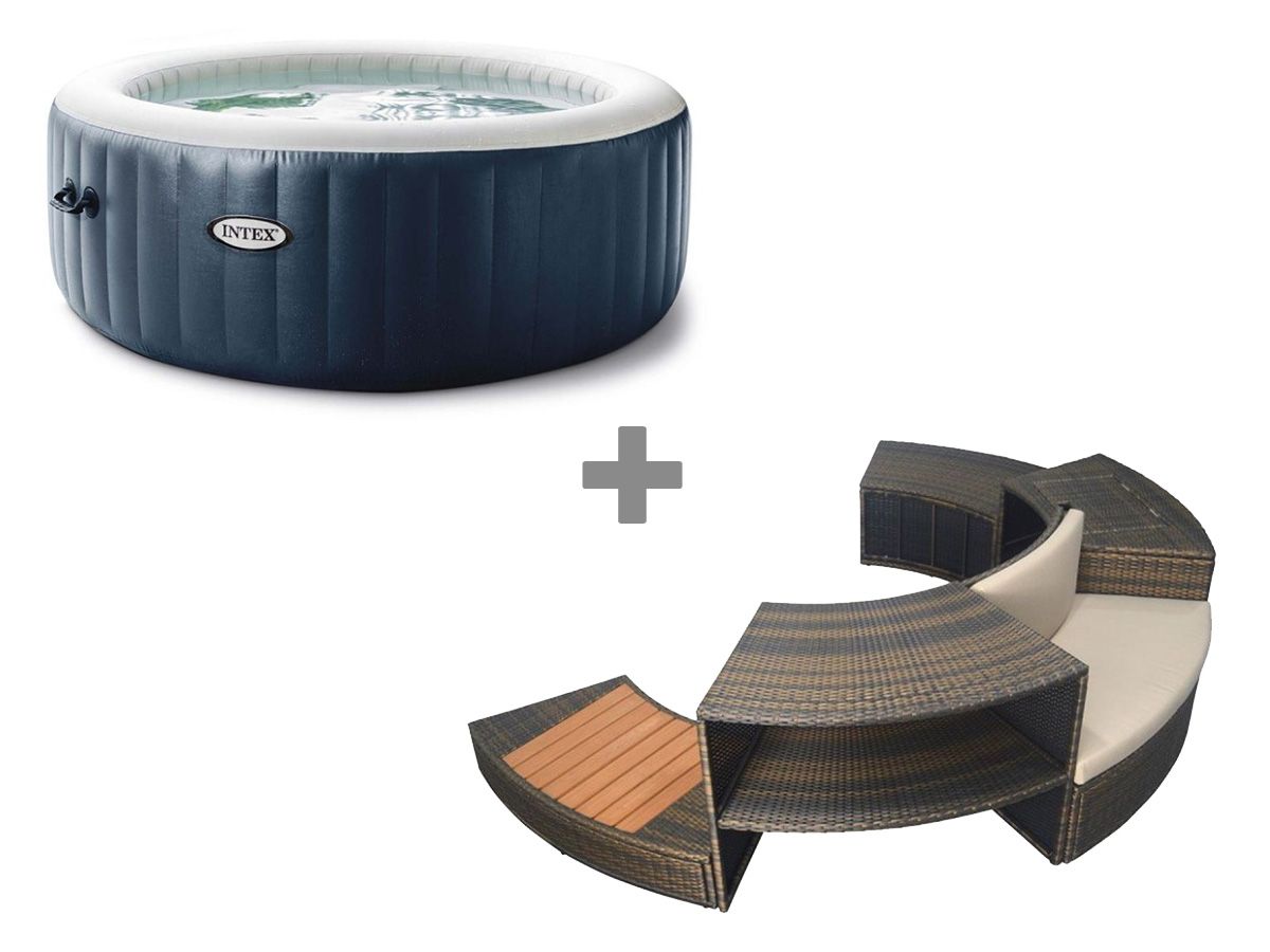 Pack spa gonflable Intex PureSpa Sahara rond Bulles 4 places + Ensemble mobilier