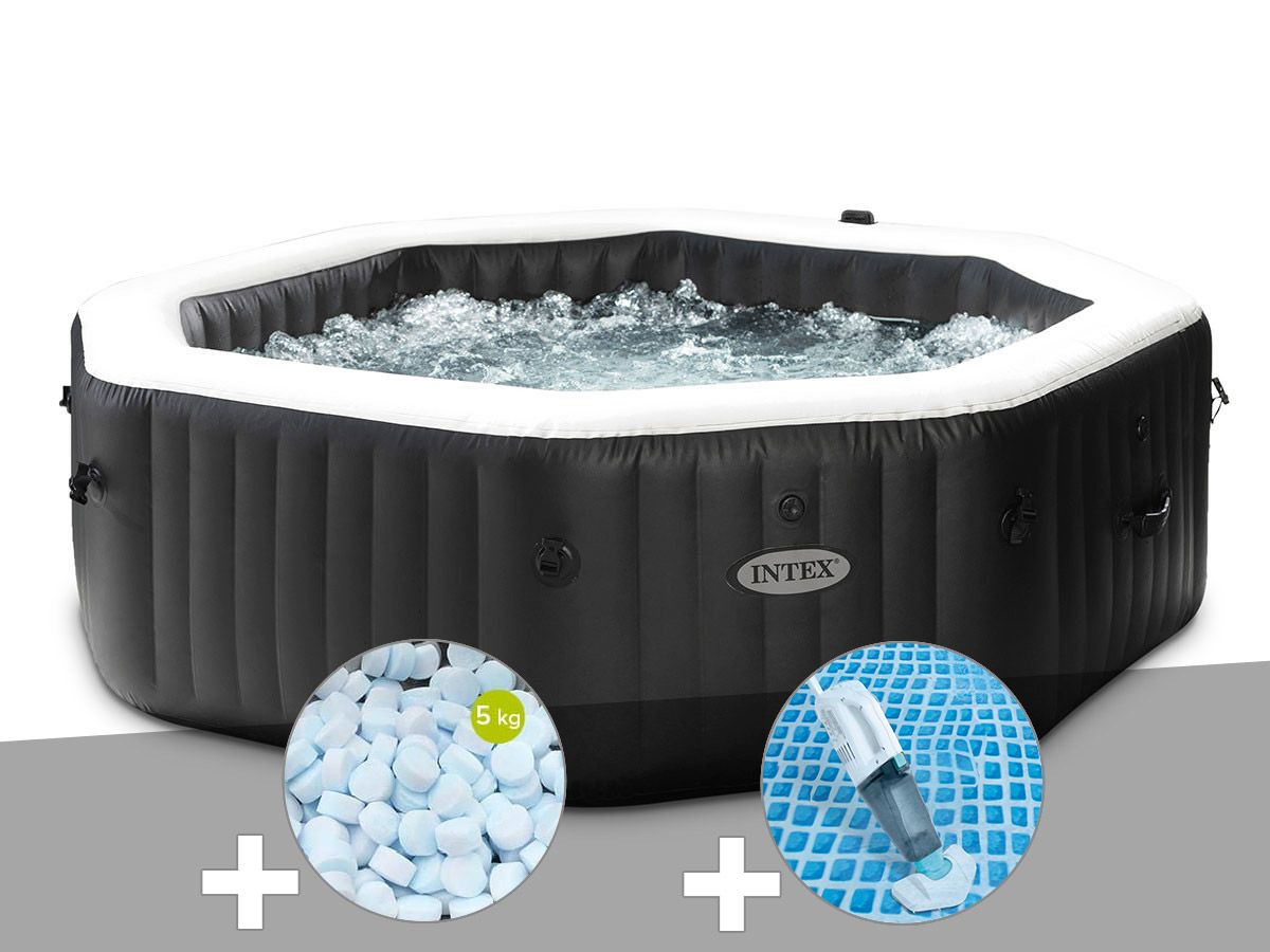 Kit spa gonflable Intex PureSpa Carbone octogonal Bulles et Jets 6 places + Kit traitement brome + Aspirateur