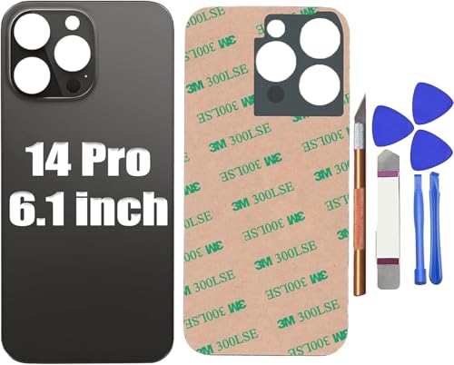 Dakexiong Space Black 14 Pro Rear Back Glass Cover Replacement for iPhone 14 Pro 6.1 inches with Repir Tools, Big Hole Rear Back Cover Glass Replacement All Carriers with Reparing Tool Kit