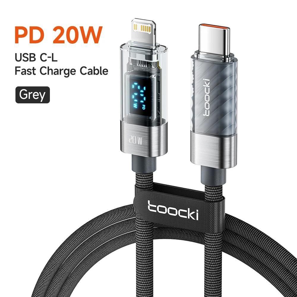 Toocki-Câble Usb Type C Pour Iphone, Charge Rapide, Transfert De Données, Affichage Pd, Iphone X, Macbook, 12, 13, 14 Pro Max, 20W.C To Ios Space Gray.1M
