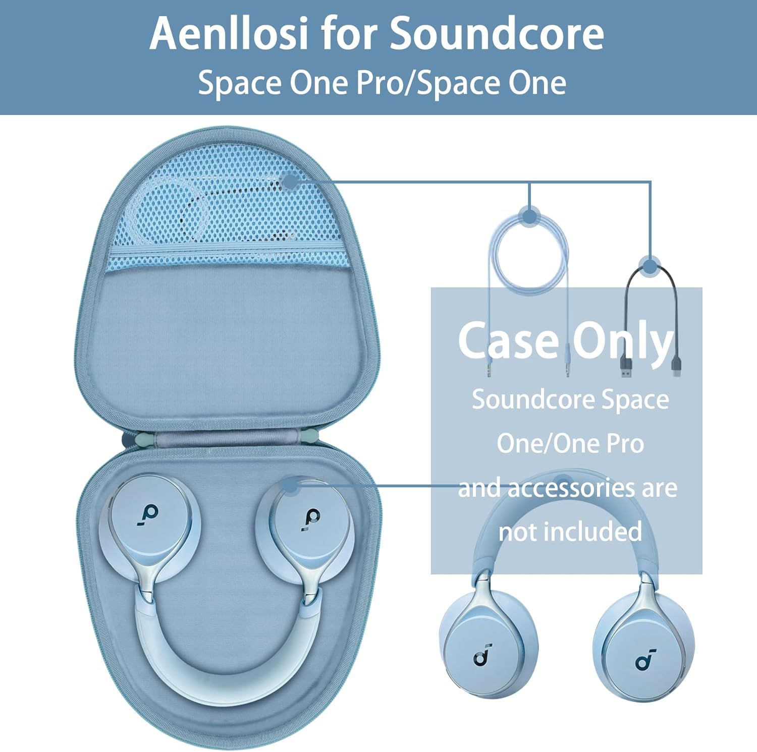 Pour Soundcore Space One Pro/Space One By Anker Casque Anti-Bruit Étanche Coque De Protection Rigide, Bleu, Boîtier Seulement