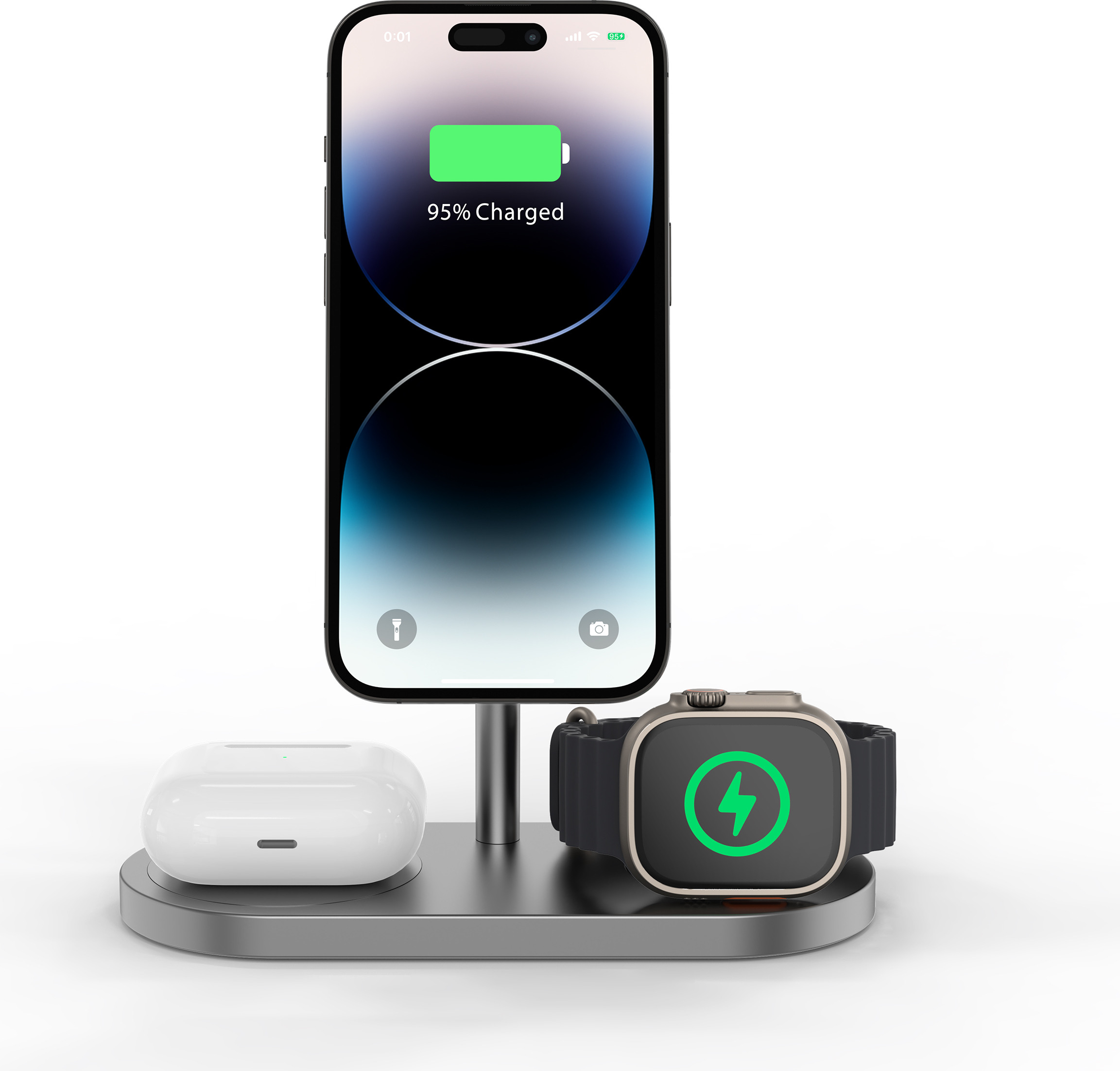 CubeNest 3in1 Wireless Magsafe Compatible Charger S313 Pro - Space Gray