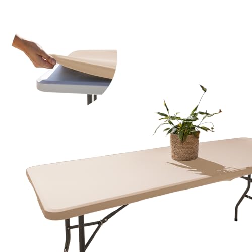 Glop - Lot de 2 Nappes Table Pliante 180 cm Champagne Beige, Housses Ajustées (183x76), Tissu Spandex Déperlant pour Noël, Fête & Décoration Chic