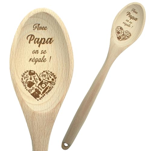 Ernestine - Cuillère en bois Papa personnalisée avec texte - cadeau papa cuisine - cadeau papa anniversaire Noël fête des pères - ustensile cuisine bois naturel gravé - fête papas spatule en bois
