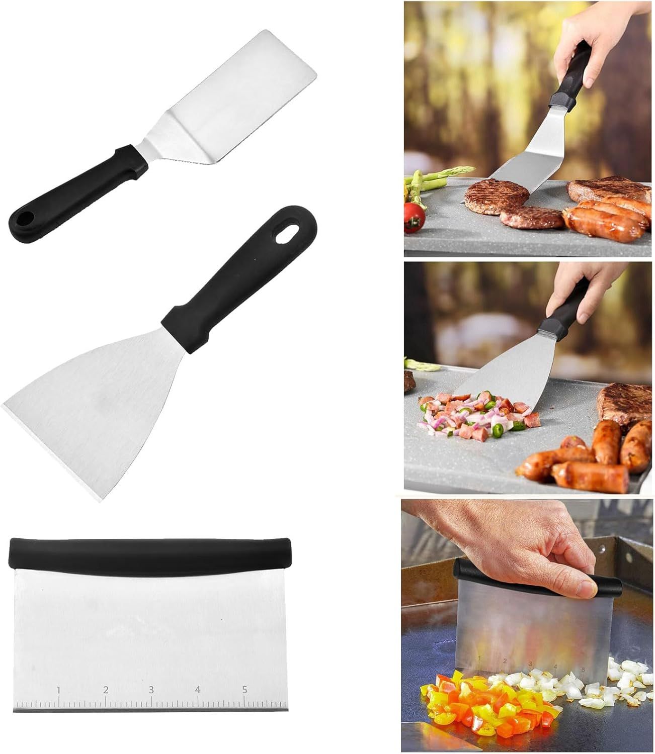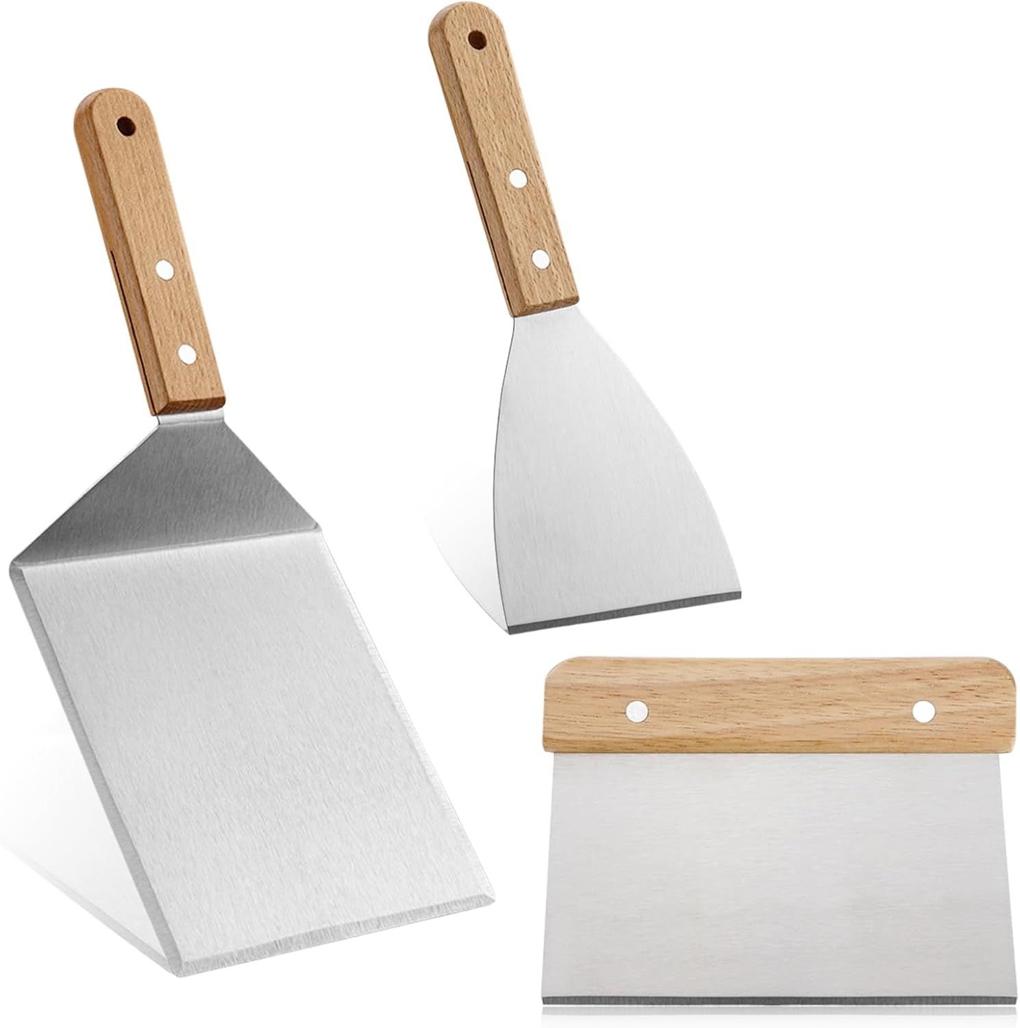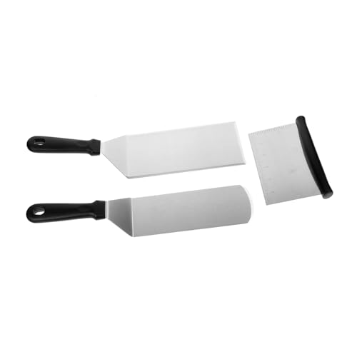CFRX-Kit Accessoires Barbecue, Spatule Plancha Inox, Métal Spatules Plate, Coupe Pâte, Cadeau pour Homme, Spatule Professionnelle pour Cuisine Teppanyaki Camping Barbecues, 3 Pièces