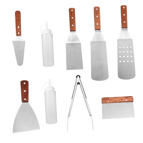 KIMIGO Set Spatule Plancha,Set de Accessoire Plancha INOX,Professionnel Ustensiles Plancha INOX avec Smash Burger Press,Spatule Professionnelle pour Barbecue de Gril pour Gril Teppanyaki et Camping