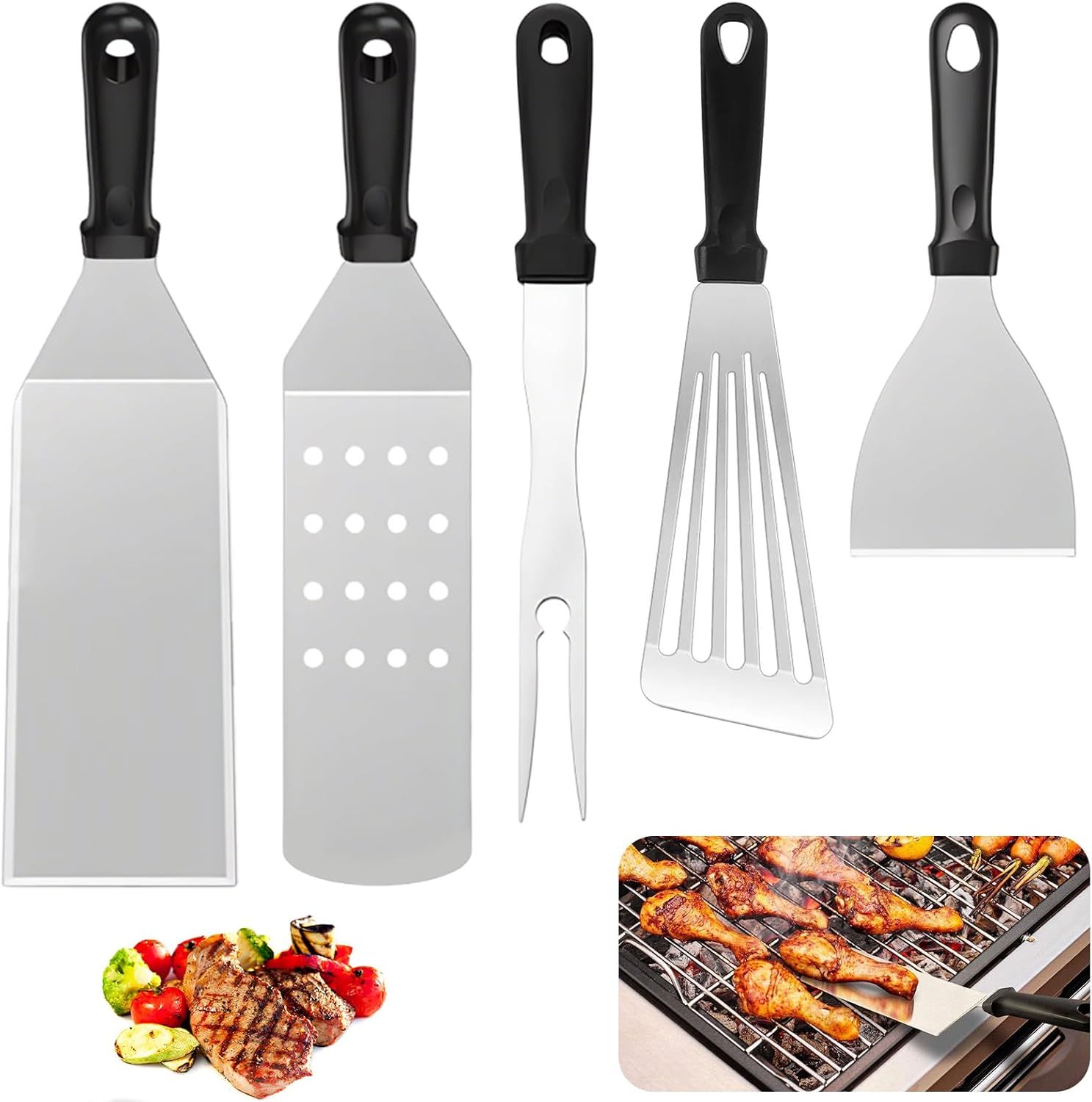 PATB-Accessoire Plancha, Spatule Cuisine Inox, Ustensiles pour Barbecue, Accessoire Indispensable pour la Plancha et les Ustensiles de Barbecue