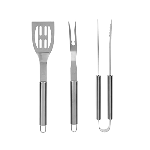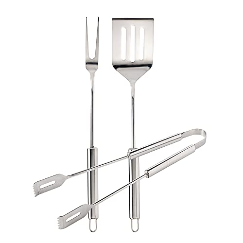 RUECAB - Ensembles d'ustensiles pour Barbecue - Lot de 3 ustensiles en INOX pour Barbecue/plancha - Composition : 1 fouchette, 1 spatule, 1 Pince - Longueur : 40cm