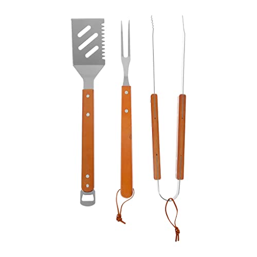 RUECAB - Ensembles d'ustensiles pour Barbecue - Lot de 3 ustensiles en INOX pour Barbecue/plancha - Composition : 1 fouchette, 1 spatule, 1 Pince - Longueur : 40cm - Manches en Bois d'acacia