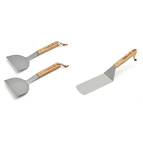 Barbecook Set de 2 spatules à plancha, ustensiles plancha pour Barbecue plancha & spatule à Poisson pour Barbecue et plancha, ustensile Barbecue en INOX et Bois 37cm