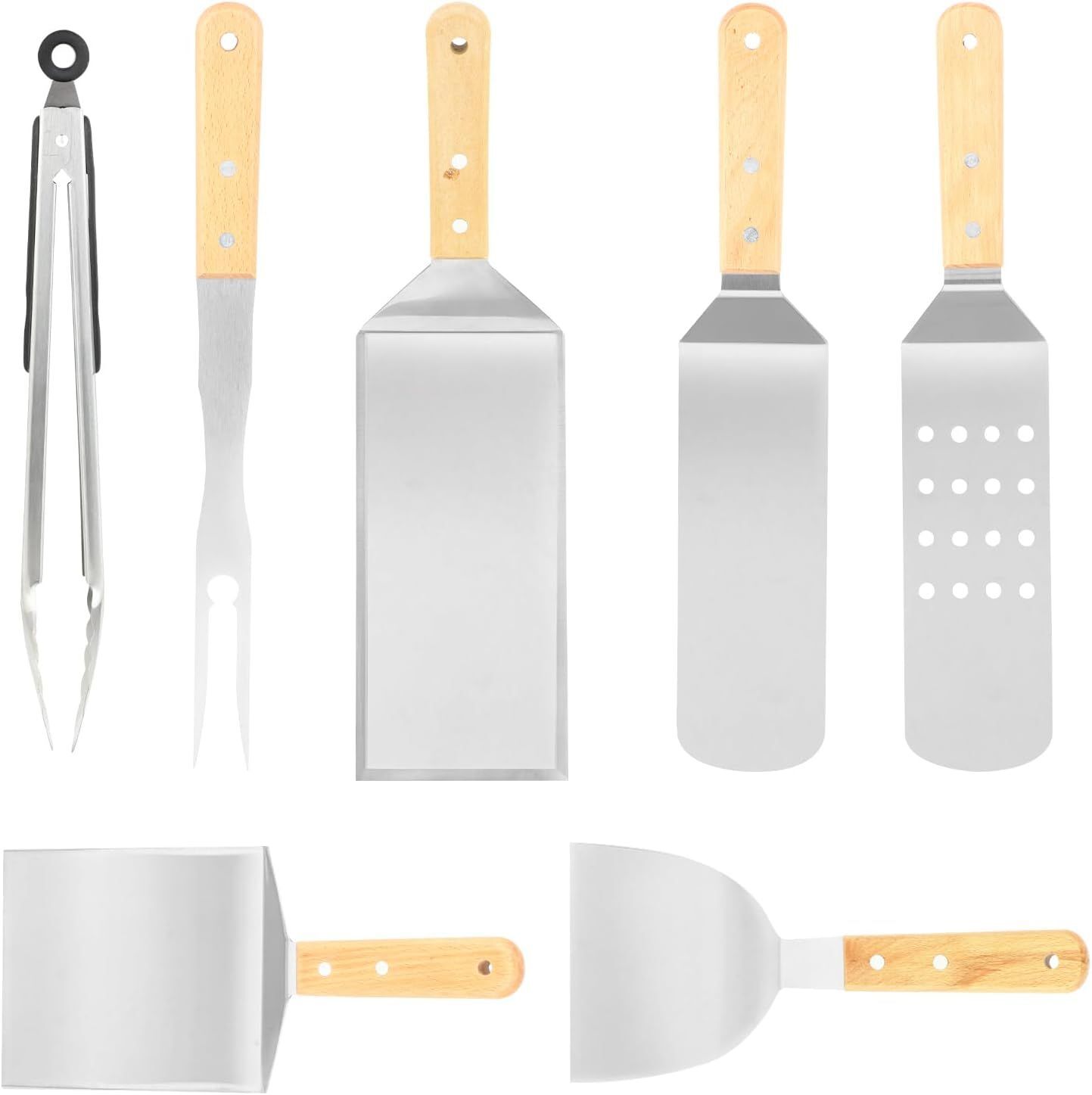 Kit Barbecue 7 Pièces – Ustensiles Barbecue en Acier INOX – Spatule Barbecue, Spatule Plancha INOX, Pince Barbecue – Accessoires Plancha et Ustensiles de Cuisine INOX pour Gril & Plancha