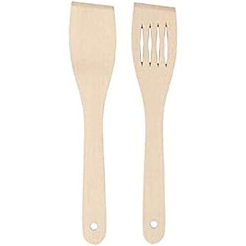 Chef Aid Ensemble de 2 Spatules en Bois, Incluant une Spatule Ajourée et une Spatule Pleine de 30 cm, Idéales pour la Cuisine et la Pâtisserie, Parfaites pour Ustensiles Antiadhésifs, Beige