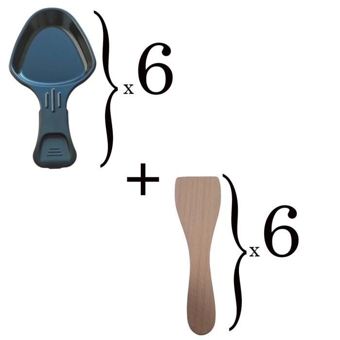 Lot de 6 coupelles à raclette et 6 pelles en bois pour Poêlon spatule raclette Raclette gril Wok AS306001 AS306003 TEFAL