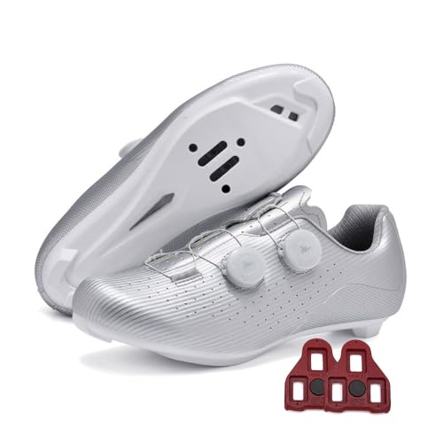 Treer Rennradschuhe Fahrradschuhe Herren Damen, Rennrad Schuh Mountain Bikes Schuhe Outdoor Radschuhe Fahrrad Indoor Spin Kompatibel Look/SPD-Cleats, 37-48EU (Argent,38)