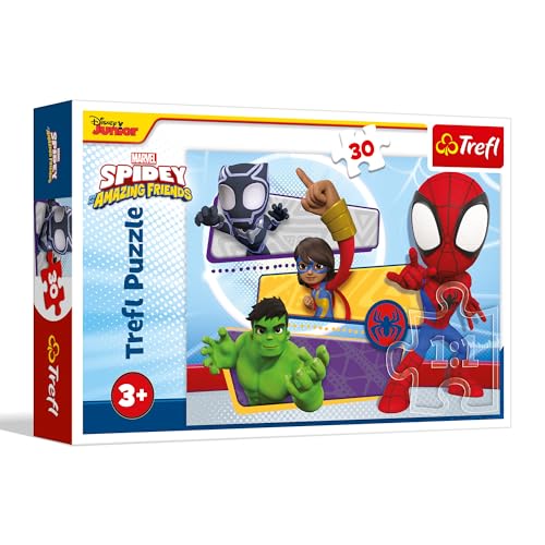 Trefl - Spiderman, Brave Spider-Man - Puzzle de 30 pièces - Puzzle coloré avec des Personnages de Contes de fées, Divertissement créatif, pour Les Enfants à partir de 3 Ans
