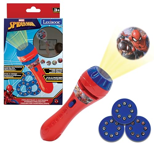 Lexibook, Spider-Man, Projecteur d'histoires, Lampe Torche et projecteur avec 3 disques, 24 Images, créez Vos Propres Histoires, LTC050SP