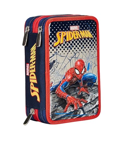 Seven Trousse 3 Compartiments, Spider-Man, Rouge, Triple Compartiment, avec Crayons, marqueurs, Couleurs, Accessoires Sac à Dos, élémentaires, Moyens, Rouge, Taglia Unica, Moderne