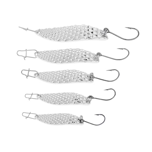 OriGlam 5pcs Lures de pêche en métal BAITS Spinner Spinner, Lures de pêche en métal Dur Spinnerbait Spoon Sequins Spoons Appâts durs pour la Truite d'eau Douce Salwater Salmon (Argent)