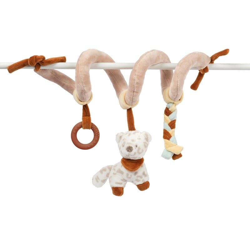 NOUKIE’S - Spirale d’Activité pour Bébé - Caramel - Lion Babou & Kendi - Doux avec Animaux en Peluche - À accrocher sur Poussette, Siège-auto ou Lit - Développe les sens - Cadeau Naissance