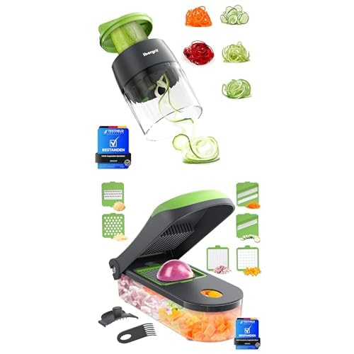 Ibergrif M522 4 en 1 Spiraliseur de Légumes pour les courgette les Concombres + Ibergrif M521 Coupe Legumes Multifonctions Professionnelle Cuisine pour Hacher les Légumes et les Fruits