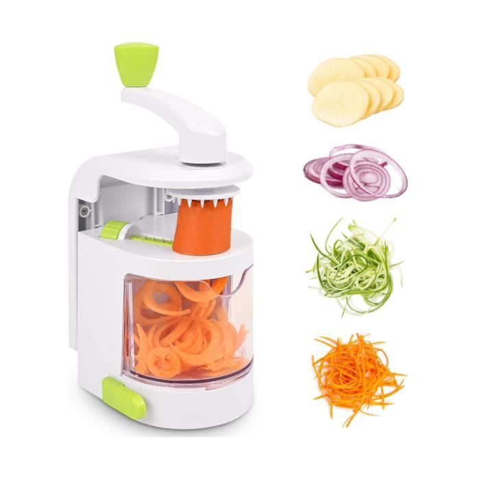 Spiraliseur de légumes - 4 en 1 - Sans BPA - Coupe jusquà 10 cm - Base à ventouse stable