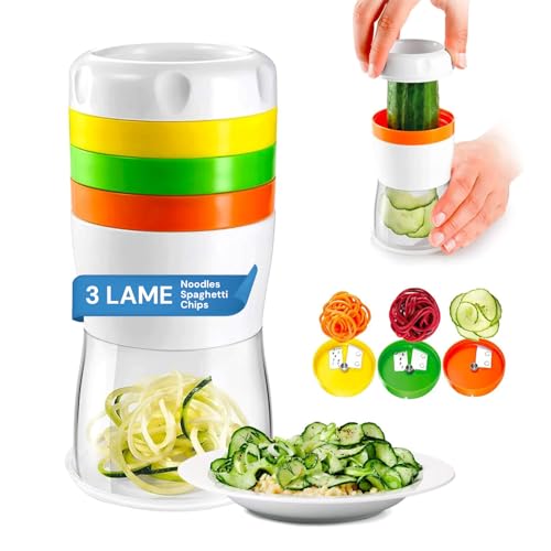 Spiraliseur en Métal Spiraliseur De Légumes Spiraliseur De Légumes, 3 Lames en Acier Inoxydable, Base D’Aspiration Manuelle, Spiraliseur De Pommes De Terre De Style Jaese pour Courgettes