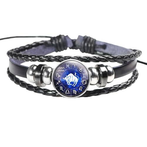 HUIANGLIYG Bracelet Zodiaque Spirit Ajustable À 12 Constellations, Bracelet En Cuir Noir Multicouche, Bijou Cadeau D'Anniversaire Pour Femmes Et Hommes Taureau