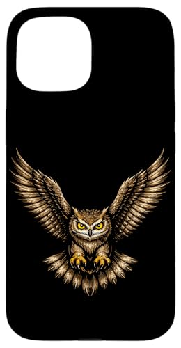Hibou Volant avec Ailes écartées Prédateur Nocturne Coque pour iPhone 15