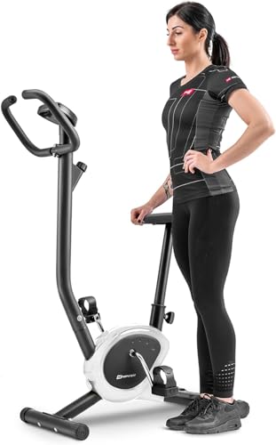 HOP-Sport® Vélo d'Appartement Mécanique HS-010H Rio, Compact pour Maison, Résistance Réglable, Ordinateur d'Entraînement avec Suivi des Calories, Distance et Temps, Jusqu'à 120 kg, Blanc