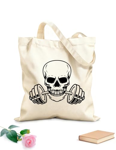 XIARON Sac en toile Skull Barbell Iron Sports Fan Weight Gymnastics tissu épais de 340g/m² Sac à dessin M Noir