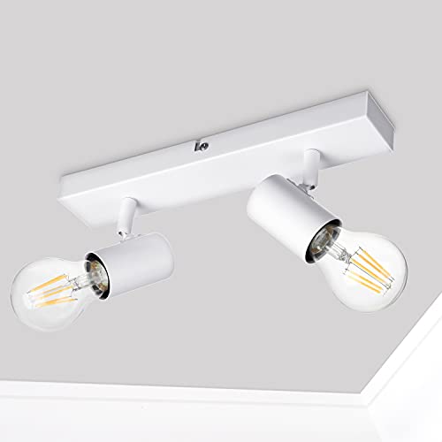 Dehobo Spots Plafonnier | Murale, Plafonnier Spots Orientables Blanc Mat, E27 Spot de Plafond Double Moderne, 60 Watt Max pour Chambre Cuisine Salon Couloir